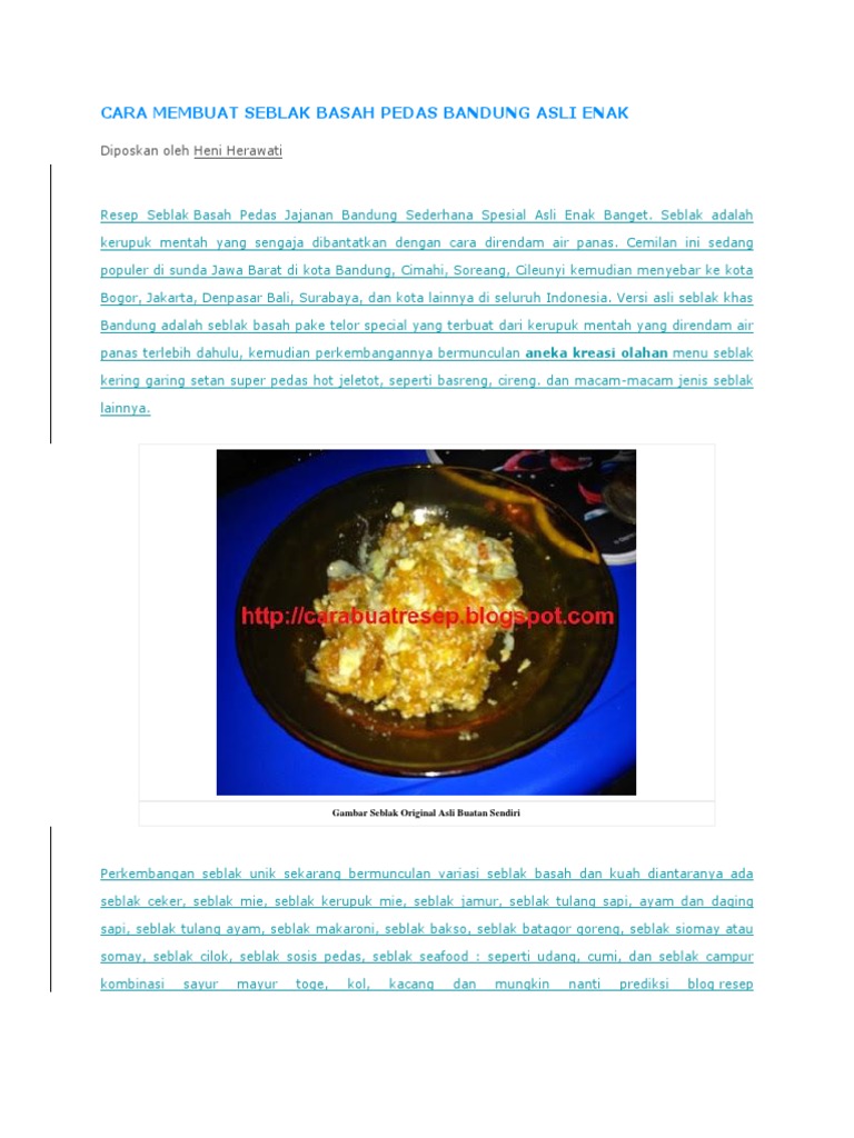 Resep cara membuat seblak asli bandung, merupakan jajanan yang sangat populer di indonesia.